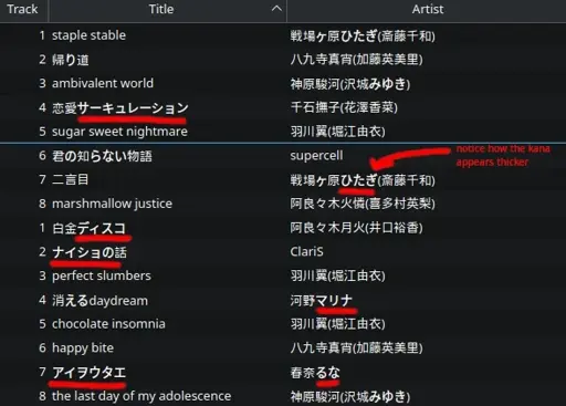 If you look closely, Kana appears a little thicker than Kanji and Latin characters. Hangeul also appears thicker just like the Kana.