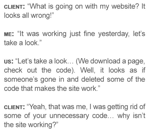 I think my dumbest customer story isn’t programming-related but still related to computers. I worked in a small computer repair shop about 3000 years ago, and one day a customer comes in with their family computer that’s “not working.” It turned out to be full of viruses and malware, and when we started working on it it turned out this was due to somebody visiting shady porn sites and clicking on download buttons left and right. I explain the situation to her and then recommend steps on how to avoid this happening in the future, so how to browse safely, antivirus software etc. She feelt a bit embarrassed and says that it’s her son, and that she’ll give him a talking-to.