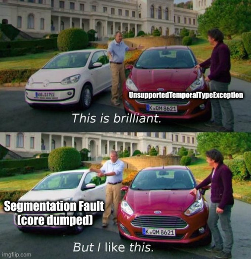 VegOwOtenks@lemmy.world to Programmer Humor@programming.devEnglish · 2 years agoTemporalAccessor, TemporalAdjustor could just as well be Star Trek thingslemmy.worldimagemessage-square0linkfedilinkarrow-up10arrow-down10